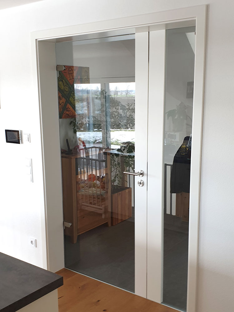 Wir verbauen Schiebetüren, Ganzglastüren, Türen mit Lichtausschnitten und Glaselementen und Oberlicht.